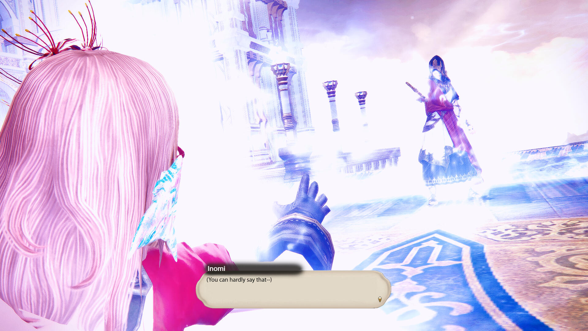 Hair: Pink, mid-back length